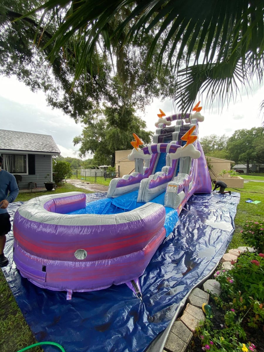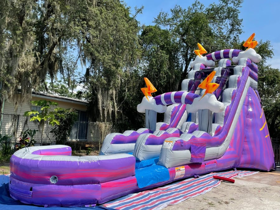 Transform your outdoor space into a world of fun and adventure with our water slide rental, bounce house and event rental in Winter Haven, Auburndale, Bartow, Lakeland, and surrounding areas. Contact us today to book the Thunder Waterslide and make a splash at your next event!