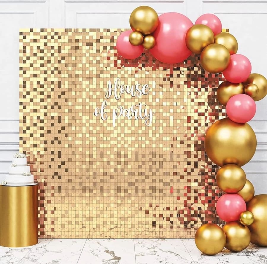 Elevate your next event with a gold shimmer wall rental. Contact us today to check availability and pricing. Make your backdrop the highlight of the night.