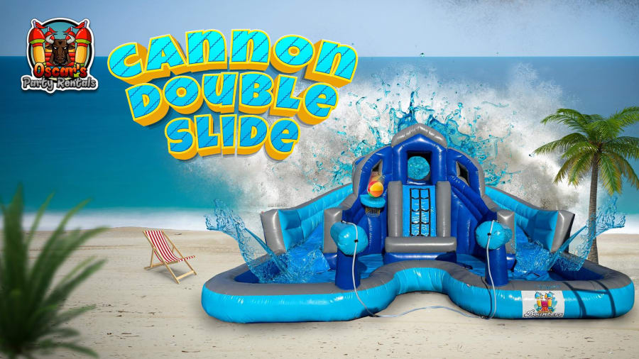 Bring the waterpark excitement to your backyard with our water slide rentals, including the Cannon Double Slide, in Winter Haven, Auburndale, Lakeland and surrounding areas Whether you're planning a party or simply want to add a splash of fun to your day, our reliable rental service ensures a hassle-free experience, complete with delivery and setup.