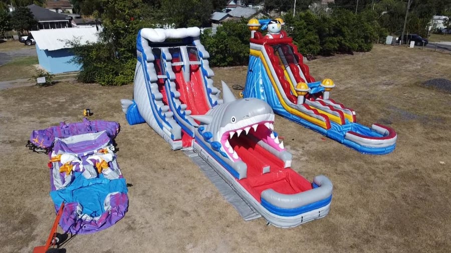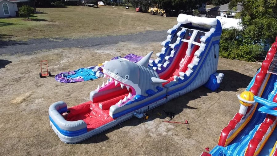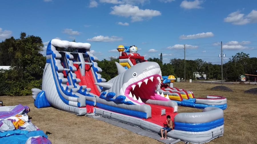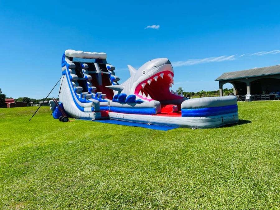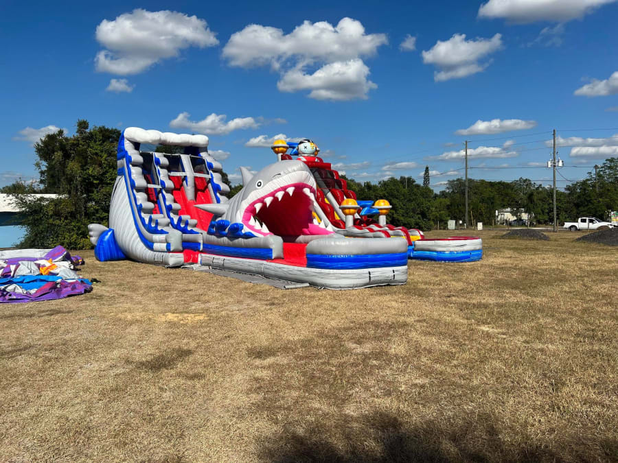 Suitable for all kinds of events, our party rentals service offers the 20ft Dual Lane Jaws Waterslide in Winter Haven, Auburndale, Bartow, Lakeland, and surrounding areas. Whether it's a birthday party, community gathering, or school function, our waterslide rental service will provide endless fun and excitement for guests of all ages.